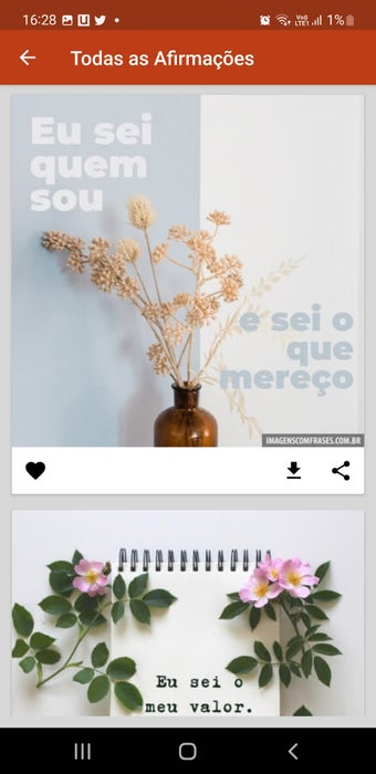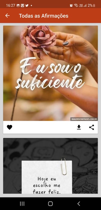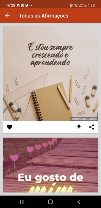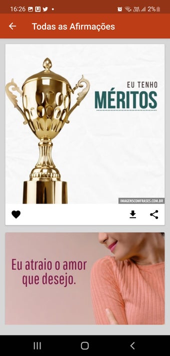 Deze app met dagelijkse positieve affirmaties heeft verschillende afbeeldingen met positieve affirmaties om je dagelijks te motiveren. De gratis app bevat ook mooie afbeeldingen en positieve zinnen om te delen op sociale media, zoals Facebook, Instagram en WhatsApp. Je kunt ook de afbeeldingen downloaden en stickers maken voor WhatsApp. De app heeft een eenvoudige en intuïtieve interface waardoor het gemakkelijk is om je affirmaties op elk moment te gebruiken en te openen. De app is perfect voor mensen die hun leven willen verbeteren door hun geest te ontwikkelen en te versterken. Het kan ook worden gebruikt door mensen die een positieve en inspirerende houding en mindset willen creëren.